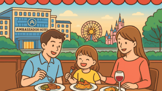 アンバサダーホテルの夕食、どこで食べるか迷っていませんか?せっかくのディズニーホテルステイだから、雰囲気も料理も特別に楽しみたいですよね。この記事では、アンバサダーホテルで楽しめる夕食のおすすめレストランや、予約のコツ、シーン別の選び方まで詳しく紹介します。