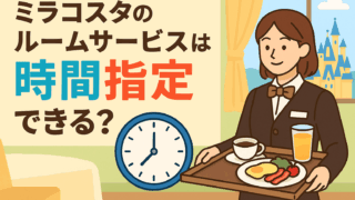 グルメ・食事・レストラン ミラコスタのルームサービスは時間指定できる?【徹底解説】朝食・ディナーのベストタイムと注文のコツ7選 「ミラコスタのルームサービスって、時間指定できるの?」 そんな疑問を持って検索している方、多いのではないでしょうか。ディズニーシーの景色を眺めながら、部屋でゆったりと食事を楽しむ──。 ミラコスタならではの贅沢な体験ですが、「何時に頼めるの?」「朝食を7時半に指定できる?」 2025.12.06 グルメ・食事・レストランホテル・宿・宿泊施設